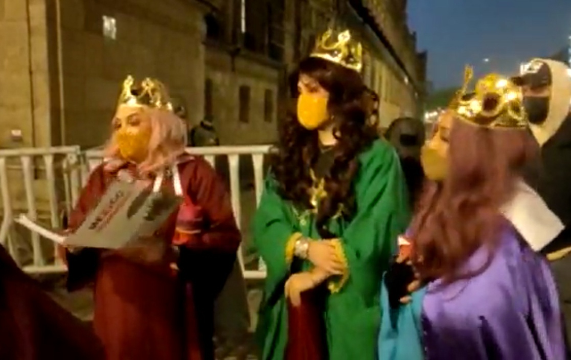 Tres ‘Reinas Magas‘ acudieron a Palacio Nacional para pedir vacunas contra COVID-19 y educación para todos los niños en México.