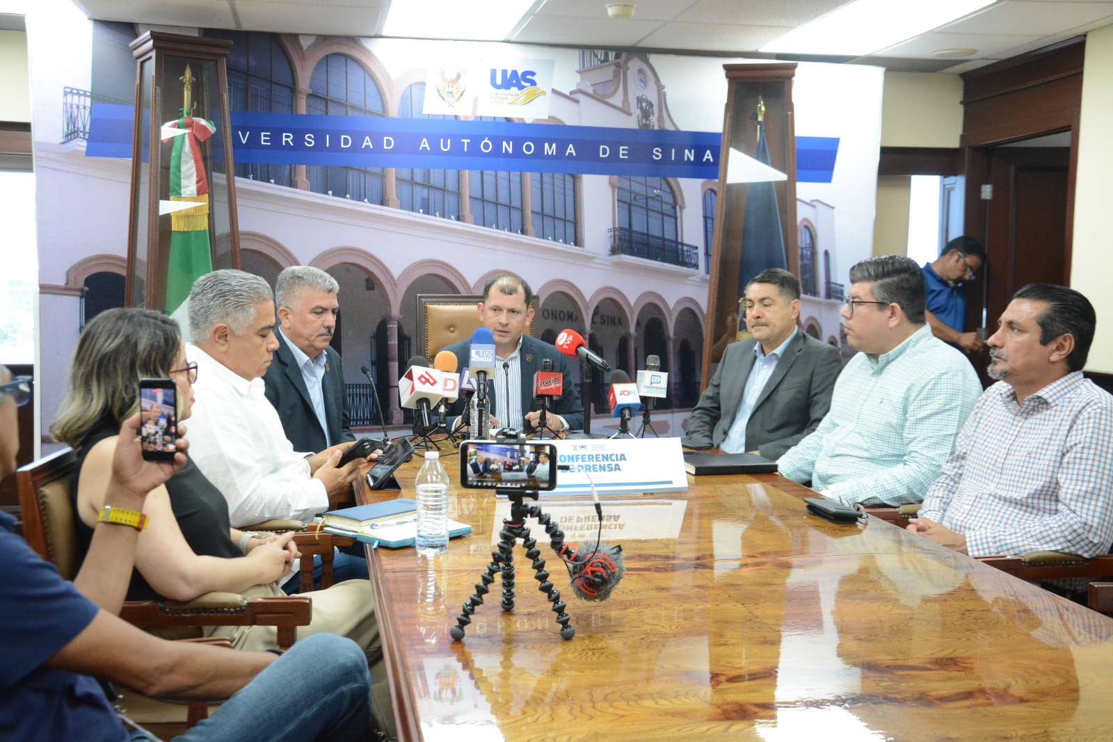 “El día de hoy entregamos un documento a las oficinas del Gobernador en donde, como institución, nos ponemos a las órdenes de discutir el tema del conflicto de la Universidad con el Gobierno del Estado y que se planteen todos los temas que lo involucran, todos los temas, que no quede ninguno fuera”, precisó el Encargado del Despacho de Rectoría, doctor Robespierre Lizárraga Otero en conferencia de prensa.