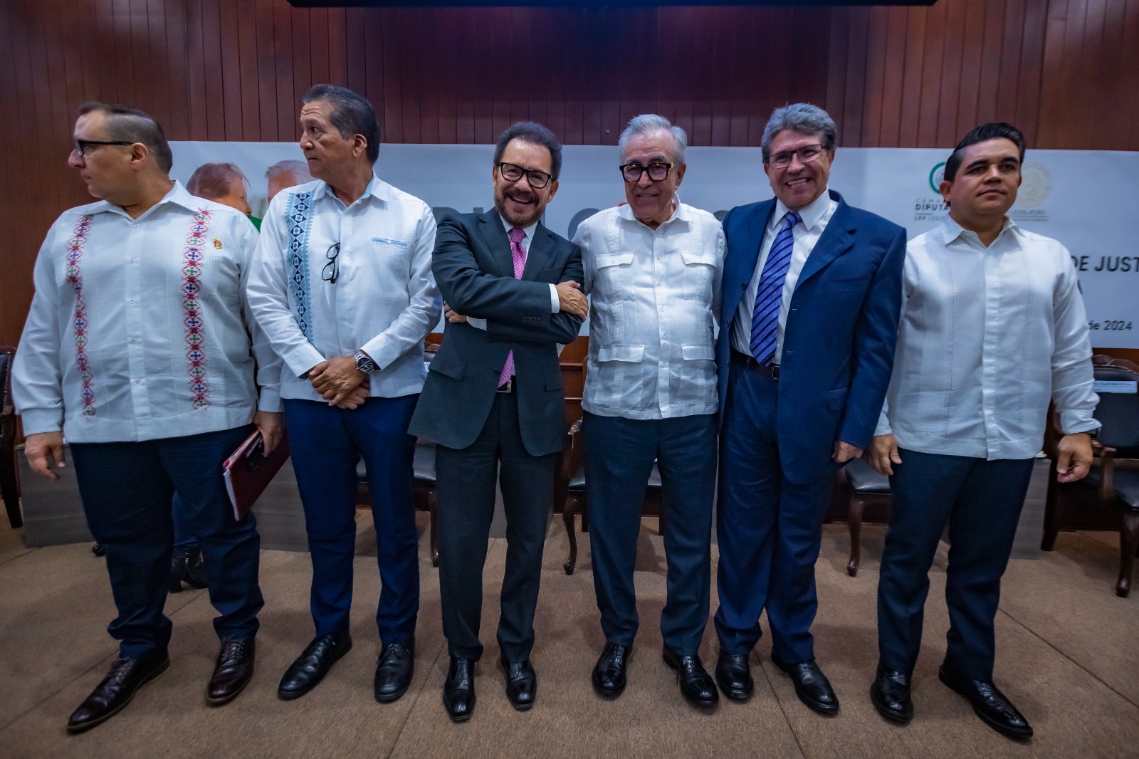 Esta fue su postura al inaugurar en el Salón Constituyentes del Congreso del Estado, el noveno y último de los foros que se realizaron en distintos estados, con el tema “Diálogos Nacionales: Impartición, Procuración de Justicia y Seguridad Pública”, evento que contó con la presencia del coordinador del grupo parlamentario de Morena en el Senado de la República, senador Ricardo Monreal Ávila; del coordinador del mismo grupo parlamentario pero en la Cámara de Diputados, diputado Ignacio Mier Velasco; y del presidente de la Comisión de Puntos Constitucionales de la Cámara de Diputados, diputado Juan Ramiro Robledo Ruiz.
