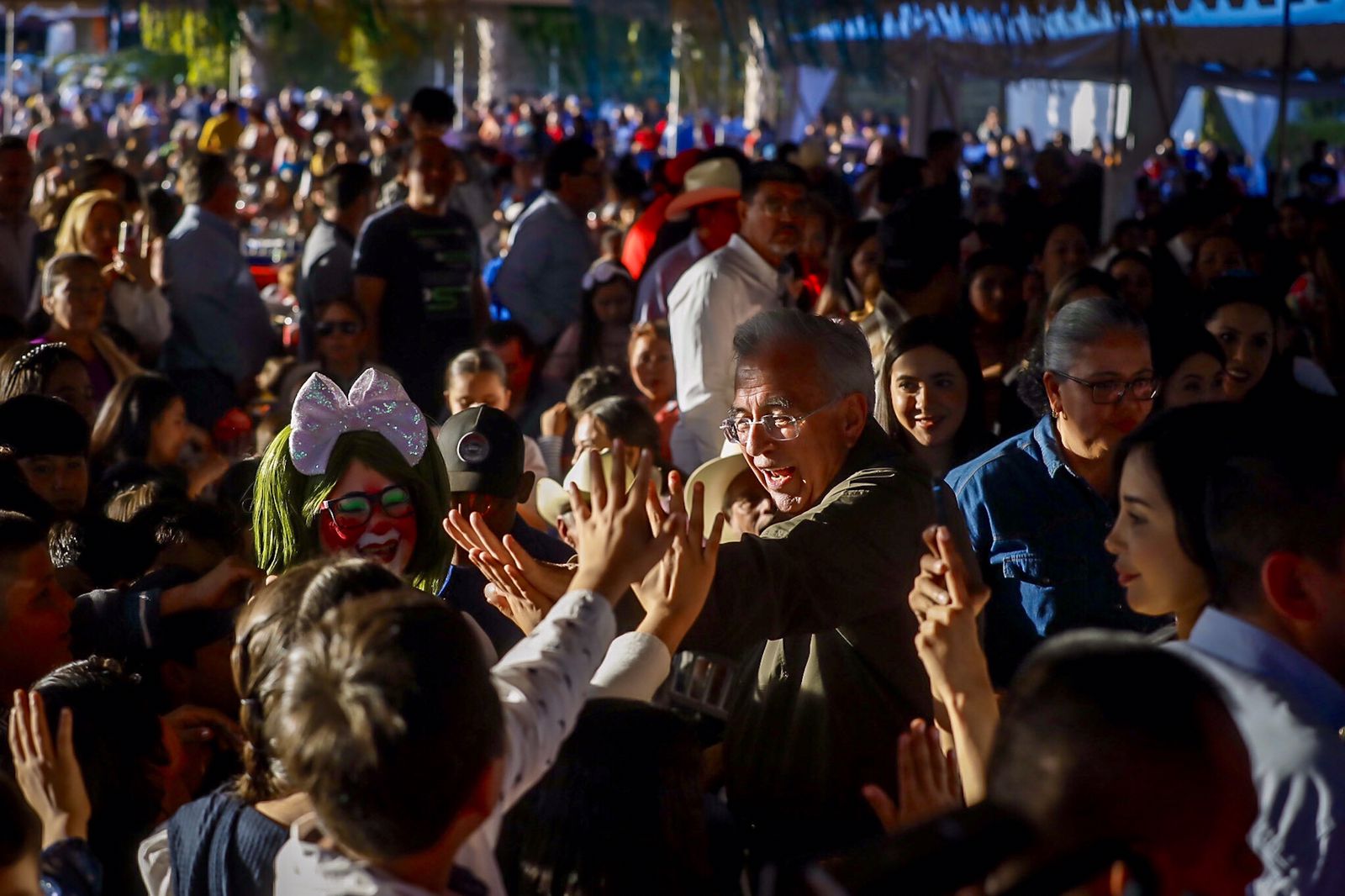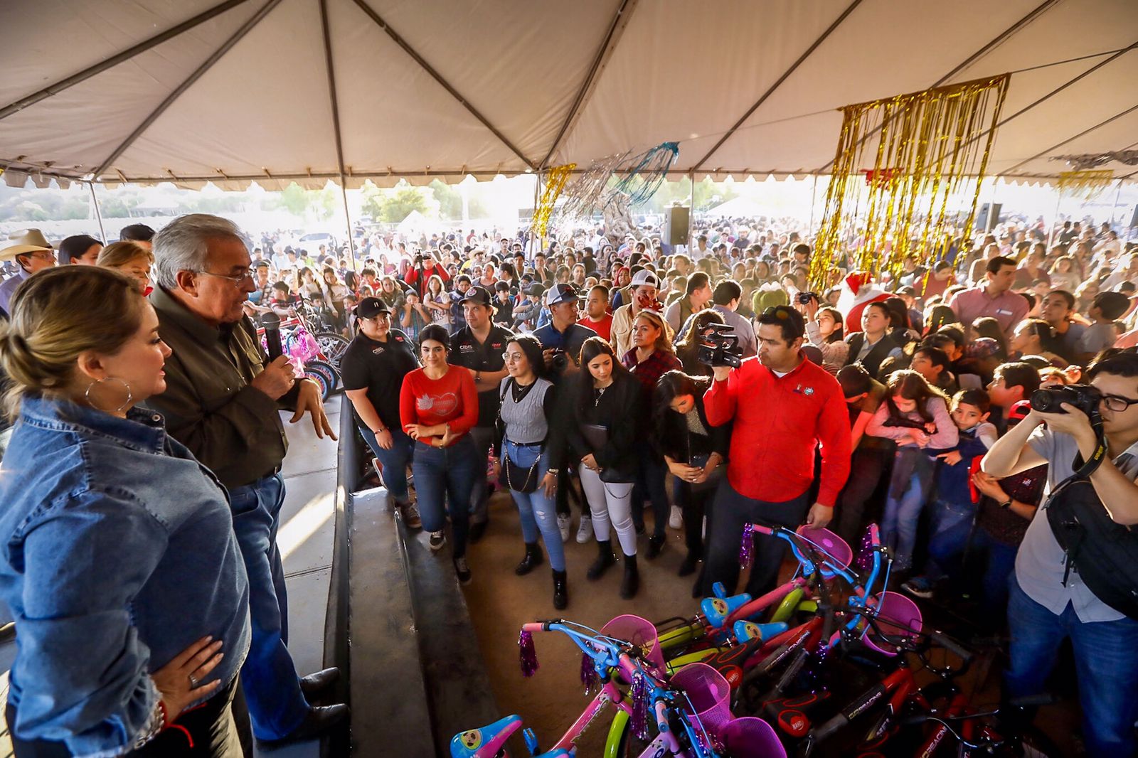 Acompañado por su hija, la presidenta del Sistema DIF Sinaloa, Eneyda Rocha Ruiz, el gobernador Rubén Rocha Moya convivió con cientos de familias de varias comunidades rurales pertenecientes a la sindicatura de Jesús María, del municipio de Culiacán, en una amena posada navideña, donde los casi dos mil niños que asistieron con sus familias, recibieron dulces, juguetes y bicicletas.