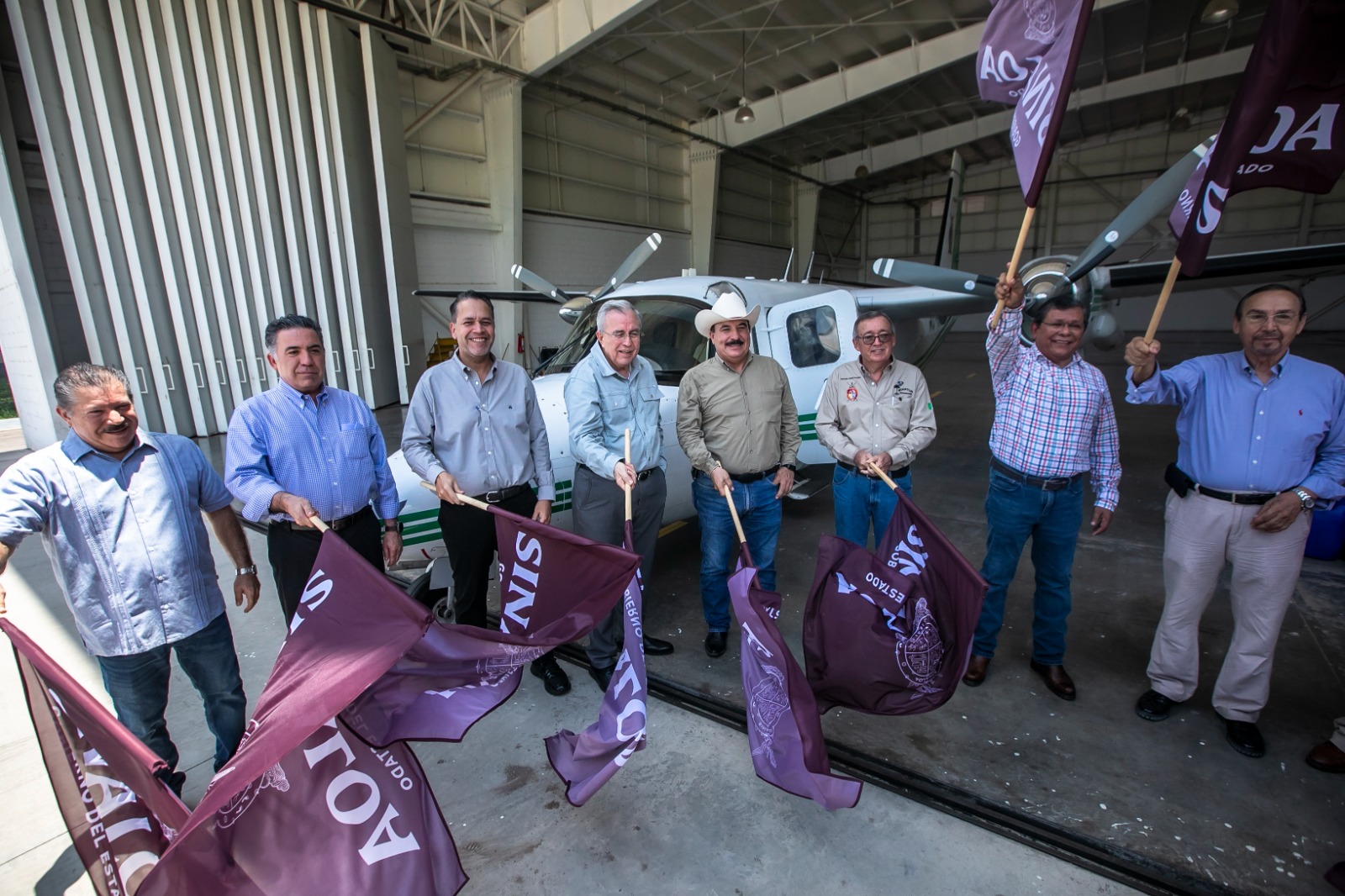 El gobernador Rubén Rocha Moya dio el banderazo de inicio al Programa de Estimulación de Lluvias para Sinaloa acompañado por el director del Programa de Estimulación de Lluvias Rafael Sanz Ramos, el representante de Conaza Víctor Manuel Amaya y el secretario de Agricultura y Ganadería José Jaime Montes Salas.