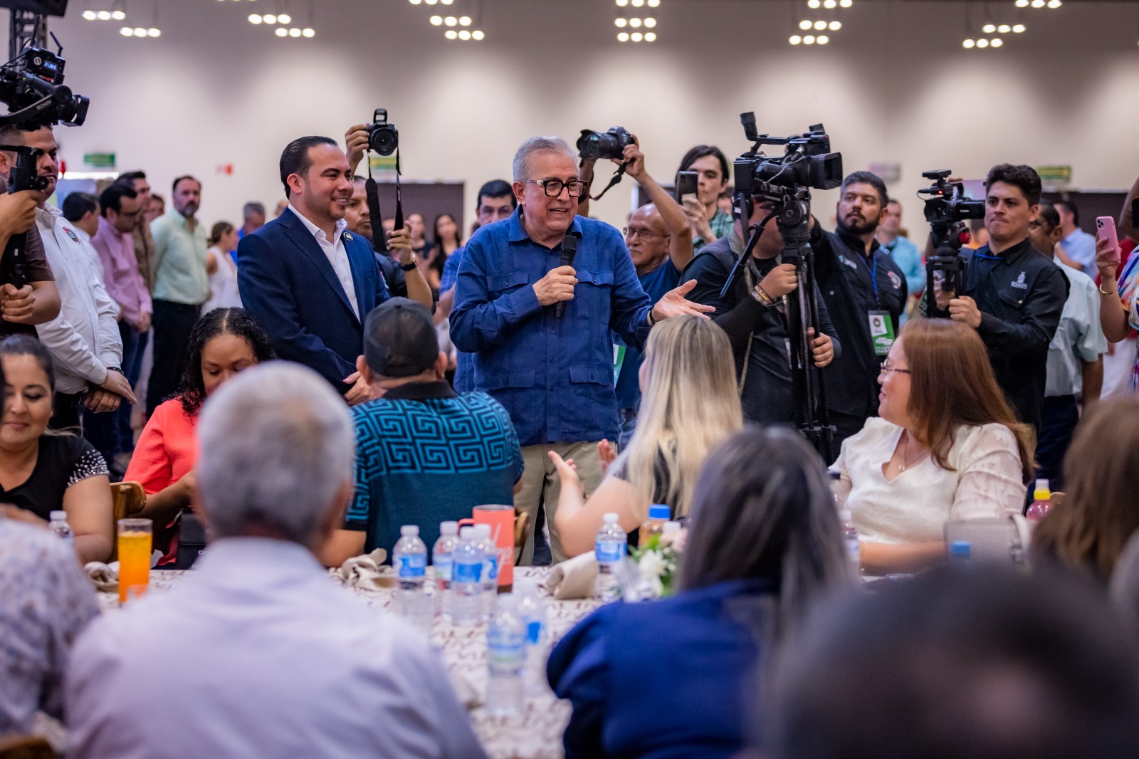 Tal como lo hizo también en las ediciones anteriores, el gobernador Rocha aportó regalos adicionales a rifarse entre los trabajadores, como fueron 30 laptops, 40 minisplits y 40 pantallas de televisión.