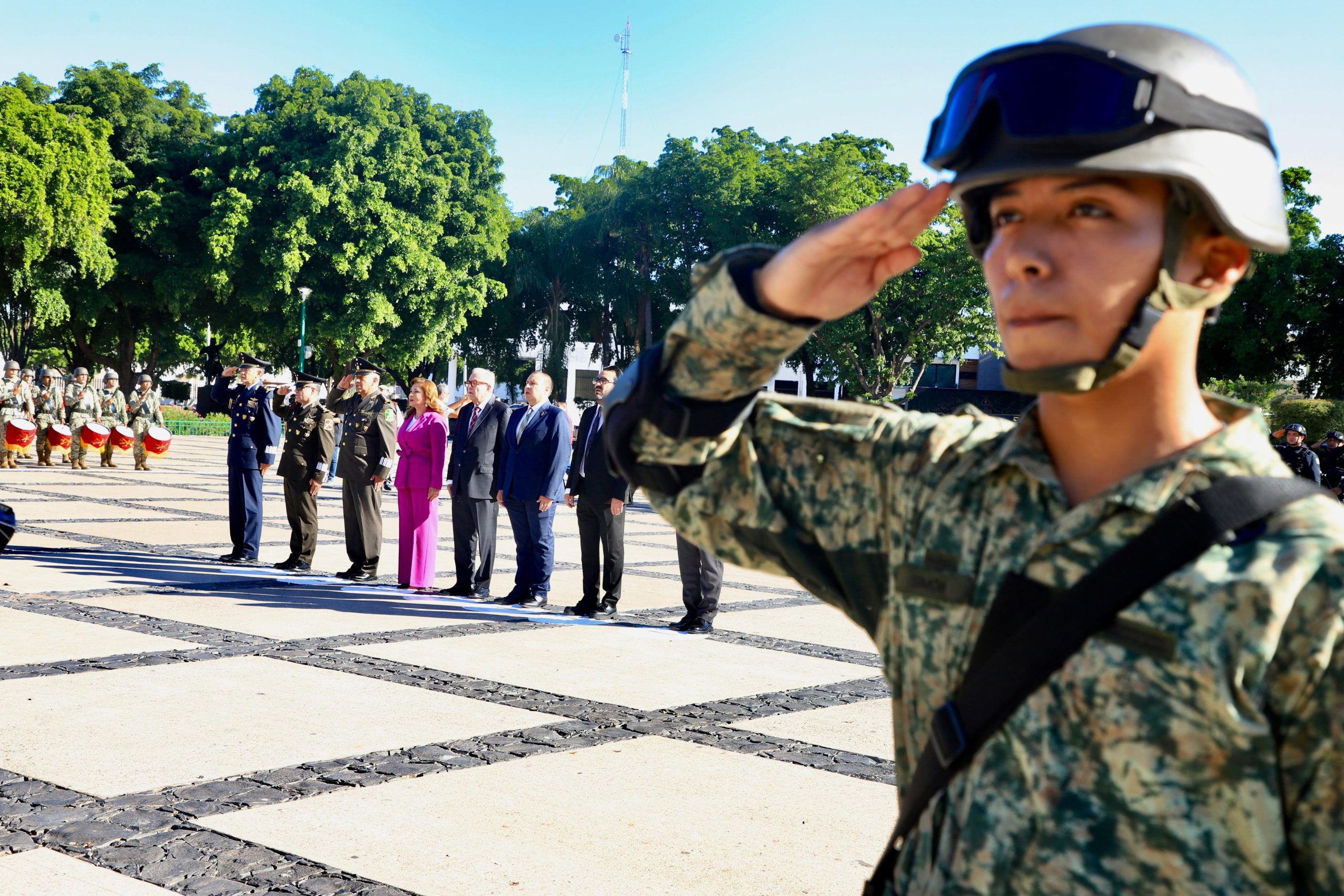 En conmemoración del 214 aniversario del Inicio de la Guerra de Independencia, el Gobernador Rubén Rocha Moya, encabezó la ceremonia de izamiento de bandera a toda asta con Honores de Ordenanza, acompañado del gabinete y funcionarios estatales.