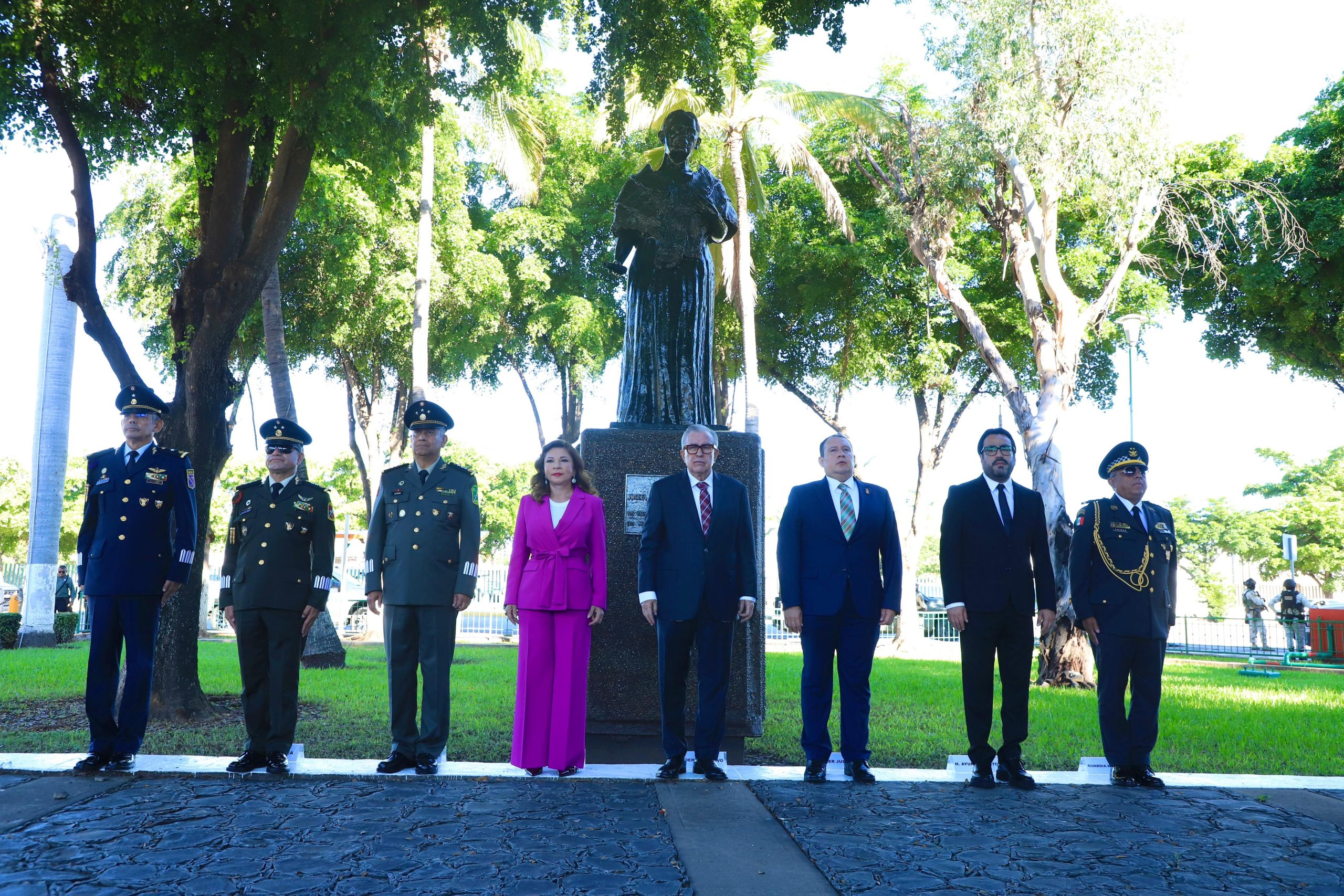 Posteriormente, se montó Guardia de Honor en los monumentos a Miguel Hidalgo y Costilla, Josefa Ortiz de Domínguez y José María Morelos y Pavón donde se leyó la semblanza de estos Héroes de la Patria.
