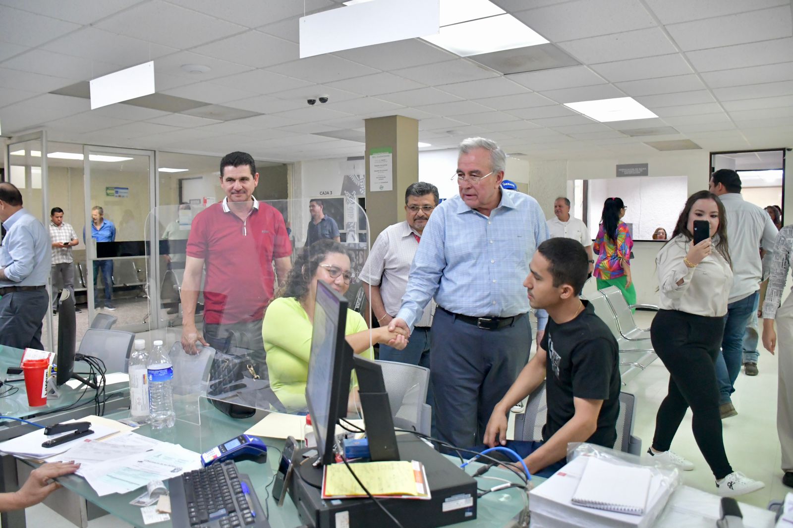 Durante su recorrido por las diferentes oficinas de atención al público, el Gobernador fue abordado por representantes de los medios de comunicación quienes aprovecharon para pedir su opinión sobre los nuevos libros de texto, a lo cual Rocha Moya hizo un llamado a los padres de familia a confiar en este innovador material educativo que ya se está distribuyendo en todo el estado.