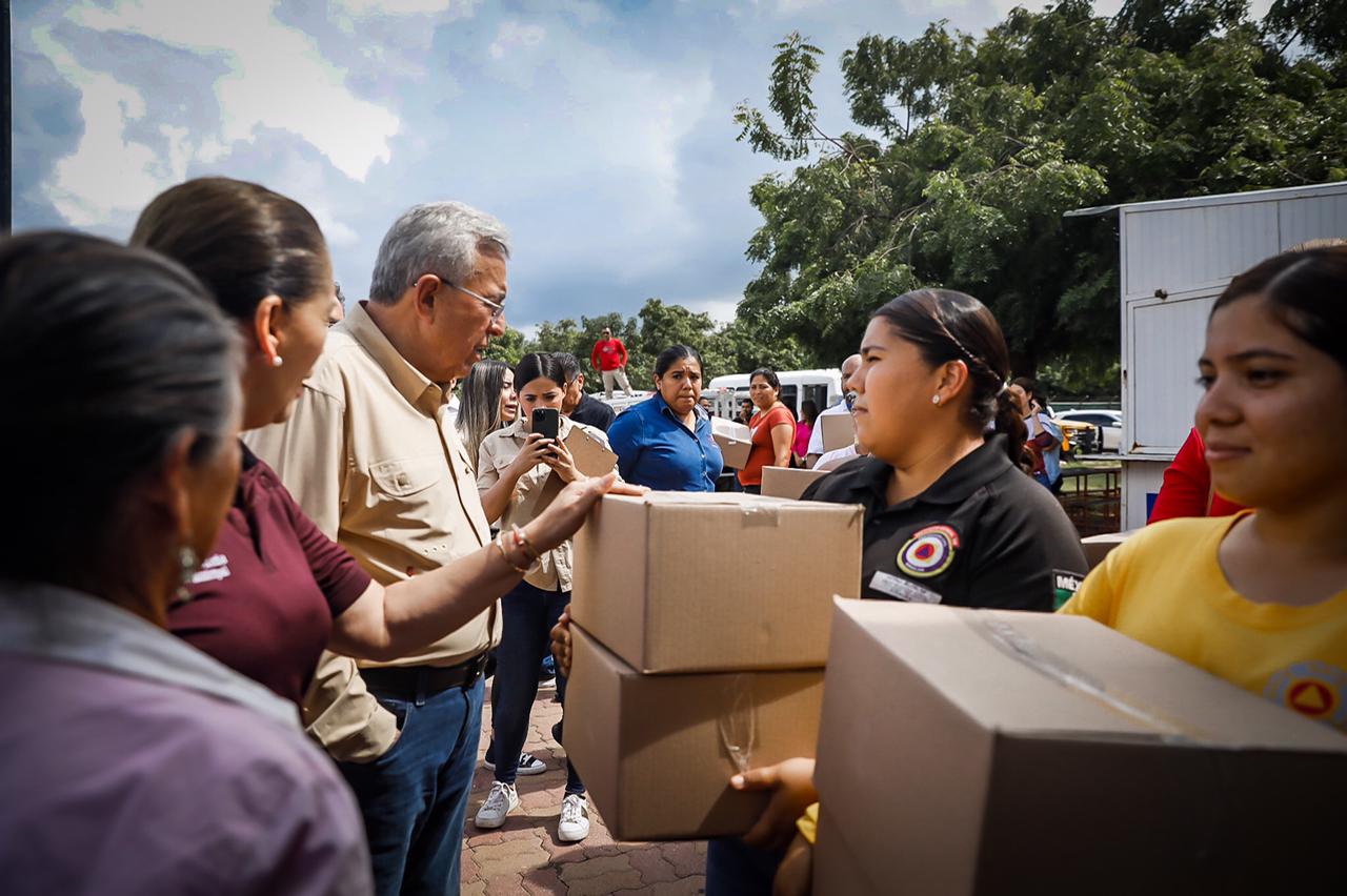 “Gracias gobernador por estar al pendiente no nada más de los escuinapenses, sino en todo el estado de Sinaloa, y agradecida con los tres órdenes de gobierno que han estado al pendiente desde hace cuatro días, siempre pretendiendo que la gente sea preventiva y hasta ahorita lo hemos logrado, y agradezco a la ciudadanía que lo ha hecho, pues desde ayer en la noche estuvimos pendientes en los albergues DIF estatal como DIF municipal, llevando lo que son las colchonetas, las despensas, los víveres para atender a la gente que estuvo ahí resguardada”, reconoció.