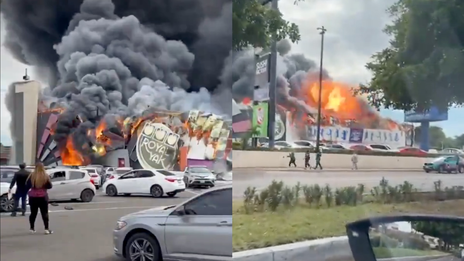 En redes sociales, usuarios compartieron varios videos de cómo el incendio consumía los locales en la plaza comercial Cinépolis.