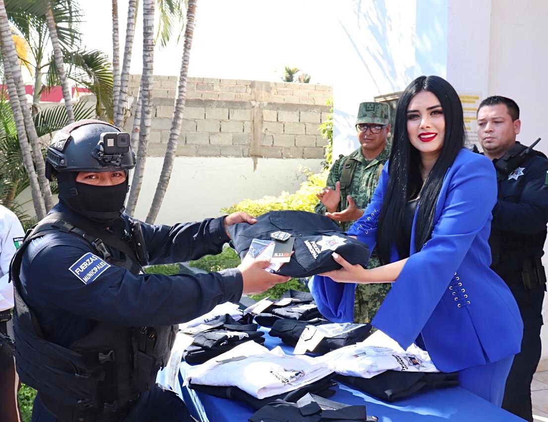 Posteriormente, Ana Karen Val hizo entrega del segundo paquete de uniformes del año a los policías y tránsitos municipales, en las instalaciones de la corporación de seguridad.