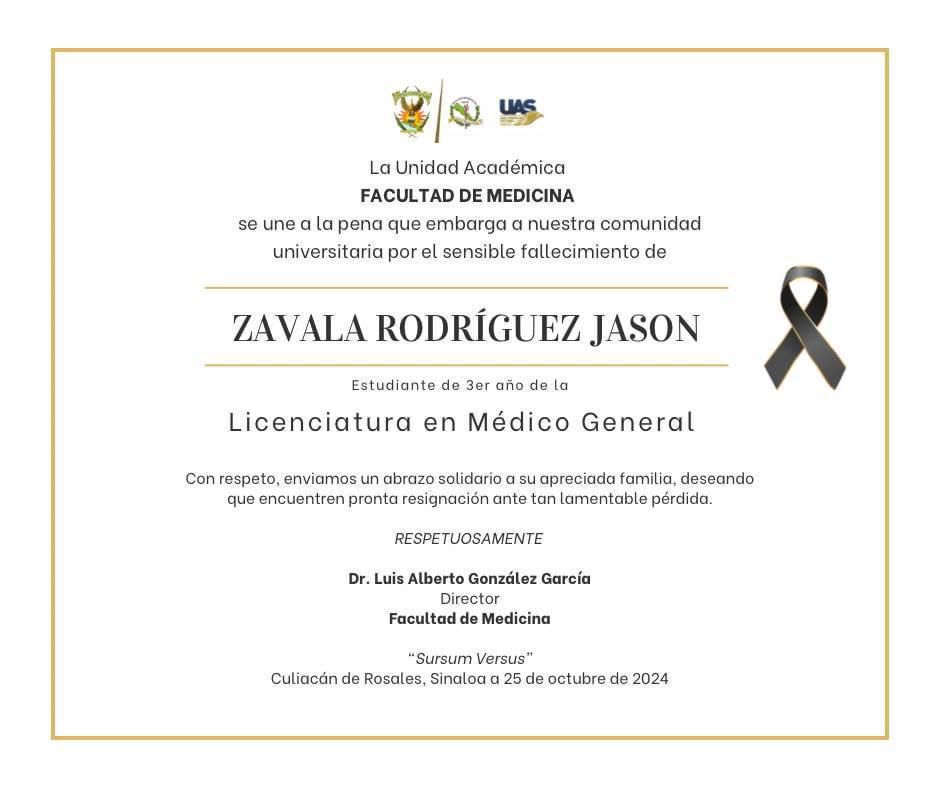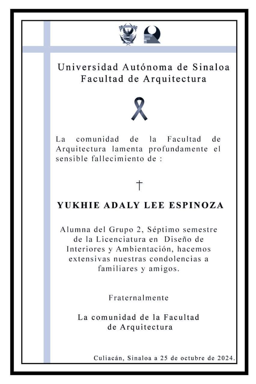 El encargado del despacho de la UAS, Candelario Ortiz, lamentó el deceso de ambos jóvenes universitarios y en un breve comunicado mandó sus condolencias a sus familiares.