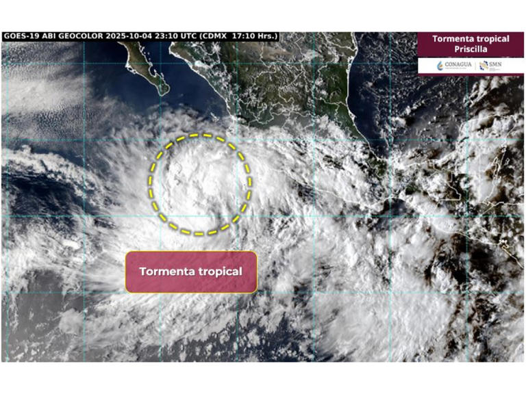 El sistema de baja presión frente a las costas del Pacífico mexicano evolucionó este sábado y dio origen a la tormenta tropical “Priscila”, fenómeno que se pronostica evolucione a huracán este fin de semana y que mantendrá lluvias torrenciales, vientos intensos y oleaje elevado en el occidente, sur y sureste del país, informó el Servicio Meteorológico Nacional (SMN).