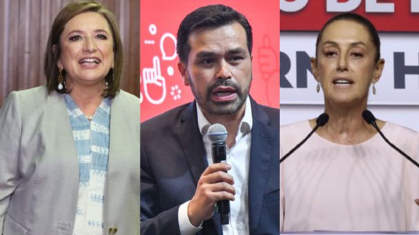 Los tres aspirantes, Claudia Sheinbaum de la coalición Sigamos Haciendo Historia (Morena, PT y PVEM); Jorge Álvarez Maynez, de Movimiento Ciudadano; y Xóchitl Gálvez, de Fuerza y Corazón por México (PAN, PRI y PRD), desde los Estudios Churubusco, sede del encuentro.