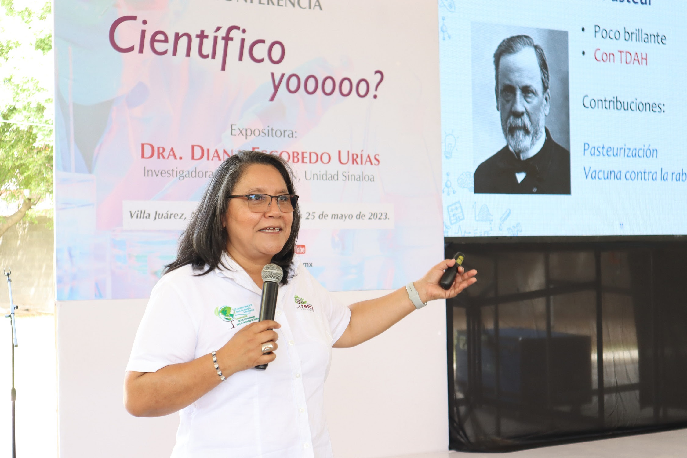 Con la conferencia Científico yooooo?, la doctora Diana Escobedo Urías —investigadora del CIIDIR-IPN— fue invitada por tercera ocasión al programa Con C de Ciencia para impulsar en los jóvenes de Villa Juárez, Navolato, la curiosidad por la ciencia. La actividad se desarrolló el jueves 25 de mayo del año en curso, ante estudiantes del CBTa 261.